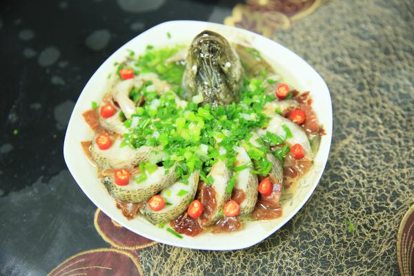 制作方法:鱸魚洗干凈,先將魚頭切下;剪掉魚鰭,從頭部開(kāi)始,用刀從魚背往魚腹切到魚尾處,切忌不可切斷;將鹽和料酒制作成的混合物抹遍魚全身,腌制15分鐘備用;生姜、蔥切絲,墊在盤子底部,將腌好的魚擺出孔雀開(kāi)屏的造型,魚頭放在最前面,尾巴部分也可單獨(dú)切下來(lái),放在魚頭下方;擺好造型后,在每一塊魚肉中間夾入一小片火腿,再在魚上鋪一層姜蔥絲,冷水入鍋,大火蒸10分鐘即可出鍋;出鍋后,去掉上面的姜蔥絲,淋上一點(diǎn)生抽,再放上適量蔥末;鍋內(nèi)倒油,燒熱后淋到魚上,再放上若干紅辣椒裝飾即可。